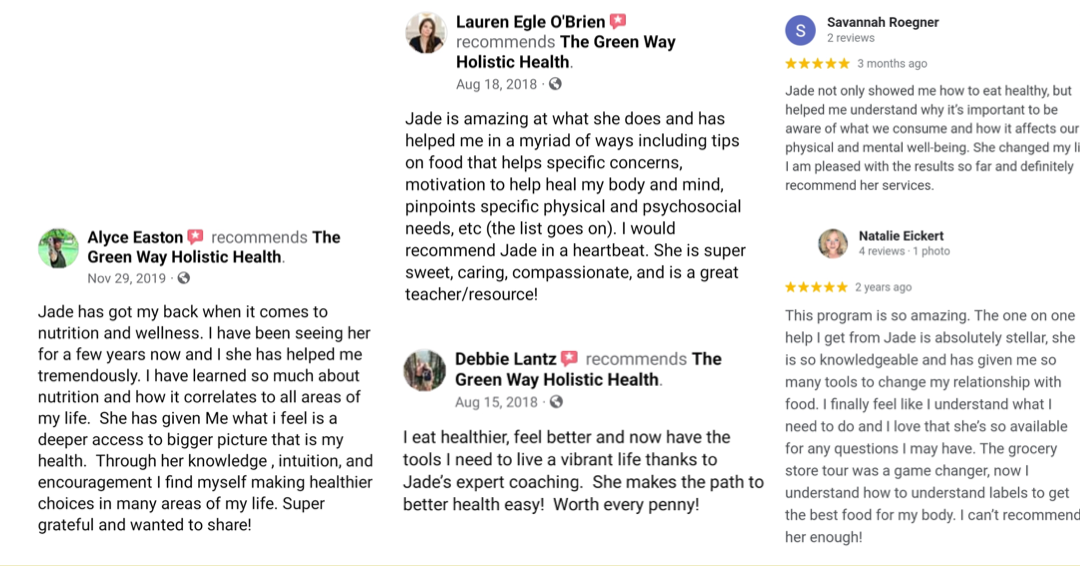 I founded Jade’s Green Way to give women like you an achievable, clear map to wellbeing- to your healthiest happiest version. You will discover the path to balance and all that you need to finally feel good forever.